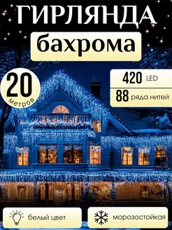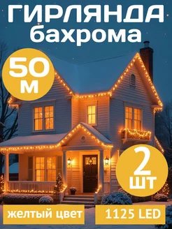 Гирлянда уличная бахрома на дом 50 метров (100м) желтая 2шт
