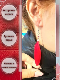 Серьги бижутерия перья длинные авторские