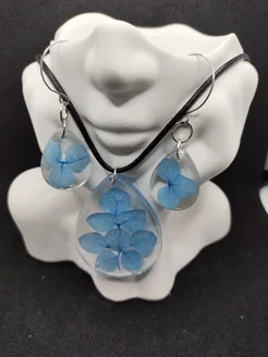 Кулон на шею и серьги крупные, эпоксидная смола