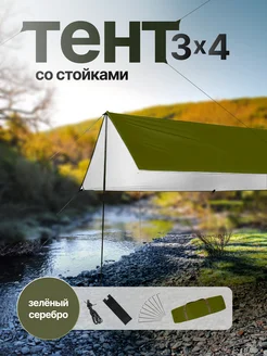 Комплект тент со стойками 3х4 зеленый с серебром