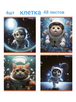 Тетради в клетку набор 4шт " Коты в космосе"