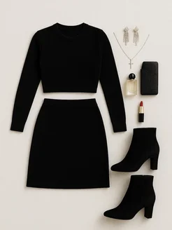 Трикотажный костюм женский с юбкой вечерний вязаный с топом