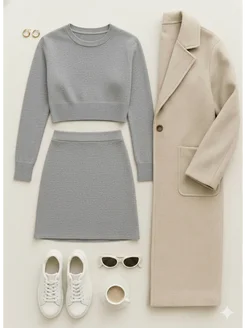 Трикотажный костюм женский с юбкой и кофтой вязаный двойка