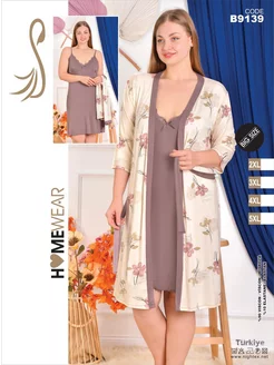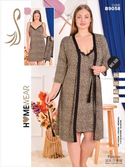 Домашний халат с сорочкой больших размеров турецкие