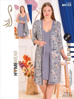 Пижама женская с халатом и пеньюар Турецкие