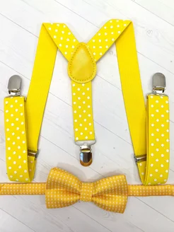 Подтяжки "Горошек" с бабочкой, желтые, детские