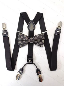 Подтяжки 4 зажима с бабочкой с рисунком, черные