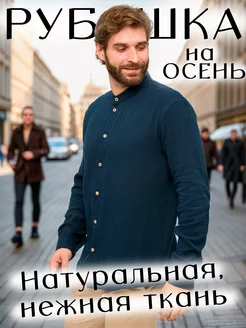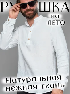Льняная рубашка летняя с длинным рукавом без воротника