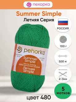 Пряжа Пехорка Летняя Симпл цвет 480 Яр.зелень, 5 шт*100г