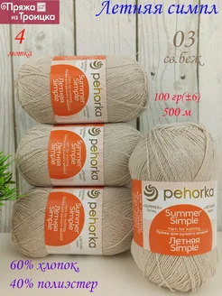 Пряжа Пехорка Летняя Симпл цвет 03 св.бежевый 4 мотка