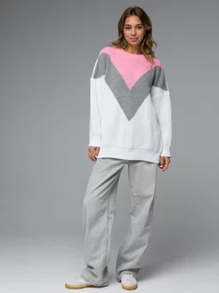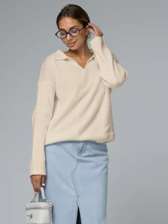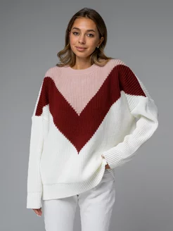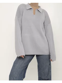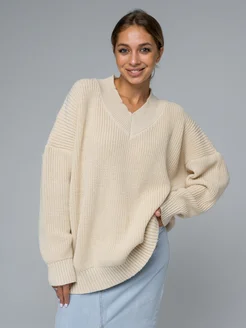Свитер вязаный оверсайз с V вырезом джемпер удлиненный