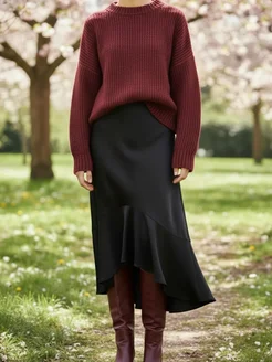 Юбка шелковая асимметричная с воланом