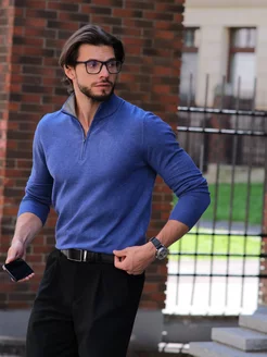 Джемпер однотонный с высоким воротником