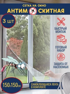Самоклеящаяся москитная сетка на окно пластиковое от комаров