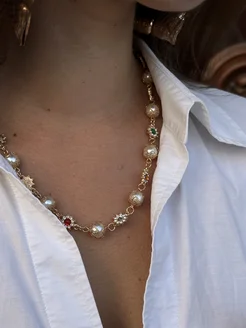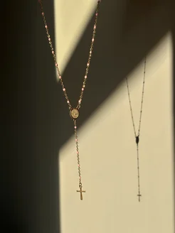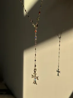 Многослойная удлиненная цепь с монетой и крестом y2k