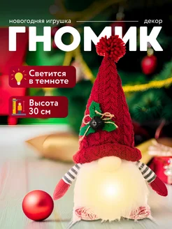 Новогодняя мягкая игрушка "Светящийся гномик"