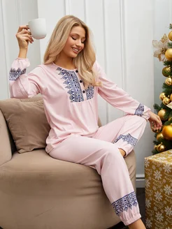 Домашний костюм пижама оверсайз со штанами и рубашкой