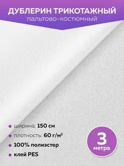 Флизелин клеевой отрезной для ткани и шитья белый 90 см 5 м