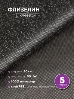 Флизелин клеевой отрезной для ткани и шитья черный 90 см 5 м