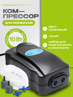 Бесшумный компрессор для аквариума двухканальный 50-800л