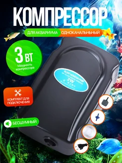 Бесшумный компрессор для аквариума одноканальный 5-150л