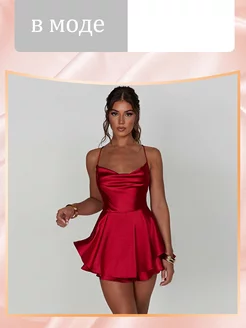 Женское короткое летнее платье с открытой спиной из шелковис…