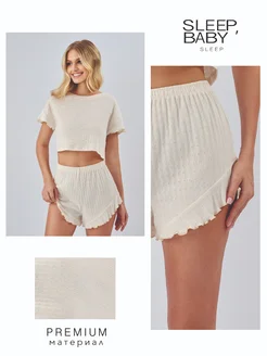 Пижама с футболкой и шортами с рюшами из хлопка