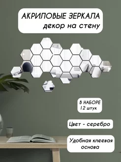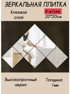 Зеркальная наклейка на стену Квадраты 4шт 20*20см