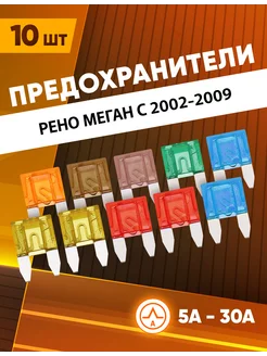 Предохранители Рено Меган 2 4 с 2002-2009 набор Мини 10 шт