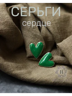 Серьги салатовые "Сердце" гвоздик