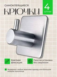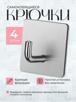 Крючки самоклеящиеся настенные без сверления 4 шт