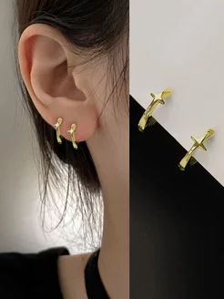 Серёжки конго с звездой-крестом золотистые