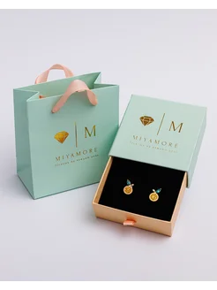Серьги c подарочной упаковкой, позолоченные с камнем