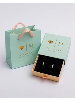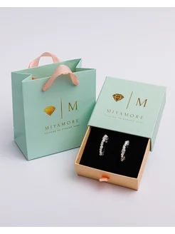 Серьги-кольца серебристые с фианитами с подарочной упаковкой