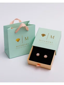 Серьги-гвоздики с розовым камушком с подарочной упаковкой