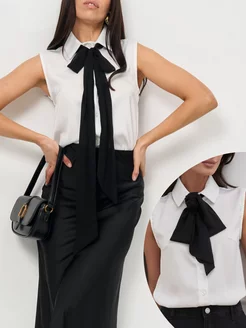 Блузка нарядная без рукавов и галстуком бантом
