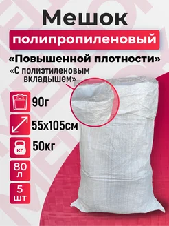 Мешки полипропиленовые с вкладышем 90г, 55х105см, 5 штук