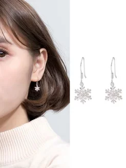 Снежинка с камнем в центре серьги-подвески