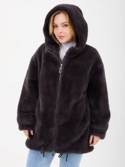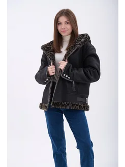 Шуба двусторонняя искусственная, Эко дубленка с капюшоном