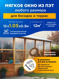 Мягкие окна для беседки и веранды — ПЭТ, 12×1,05 м, корич