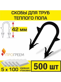 Скобы 42 мм (500 шт) для труб теплого пола d 14-16-17-18 мм