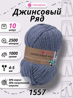 Пряжа 50% шерсть Джинсовый ряд 1557 Св.джинсовый 10шт*100г