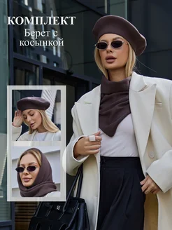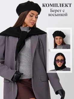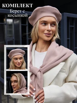 Комплект берет демисезонный шерстяной с шарфом косынкой
