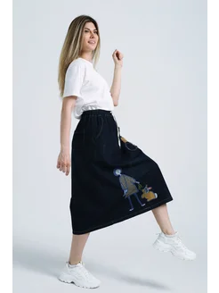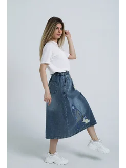 Юбка джинсовая бохо с аппликацией