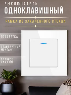 Выключатель одноклавишный с рамкой из закаленного стекла