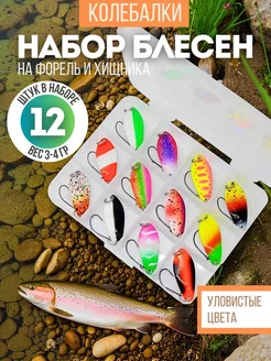 Набор блесен для спиннинга колебалок 12 штук форелевых