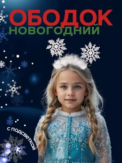 Ободок новогодний снежинка детский с подсветкой