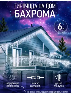 Гирлянда бахрома уличная 6м, белый провод (РАНДОМНО)