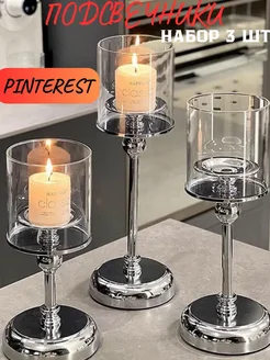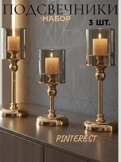 Подсвечники для свечей золотые интерьерные стекло 3 шт