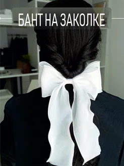 Бант для волос на заколке белый шифон на 1 сентября в школу